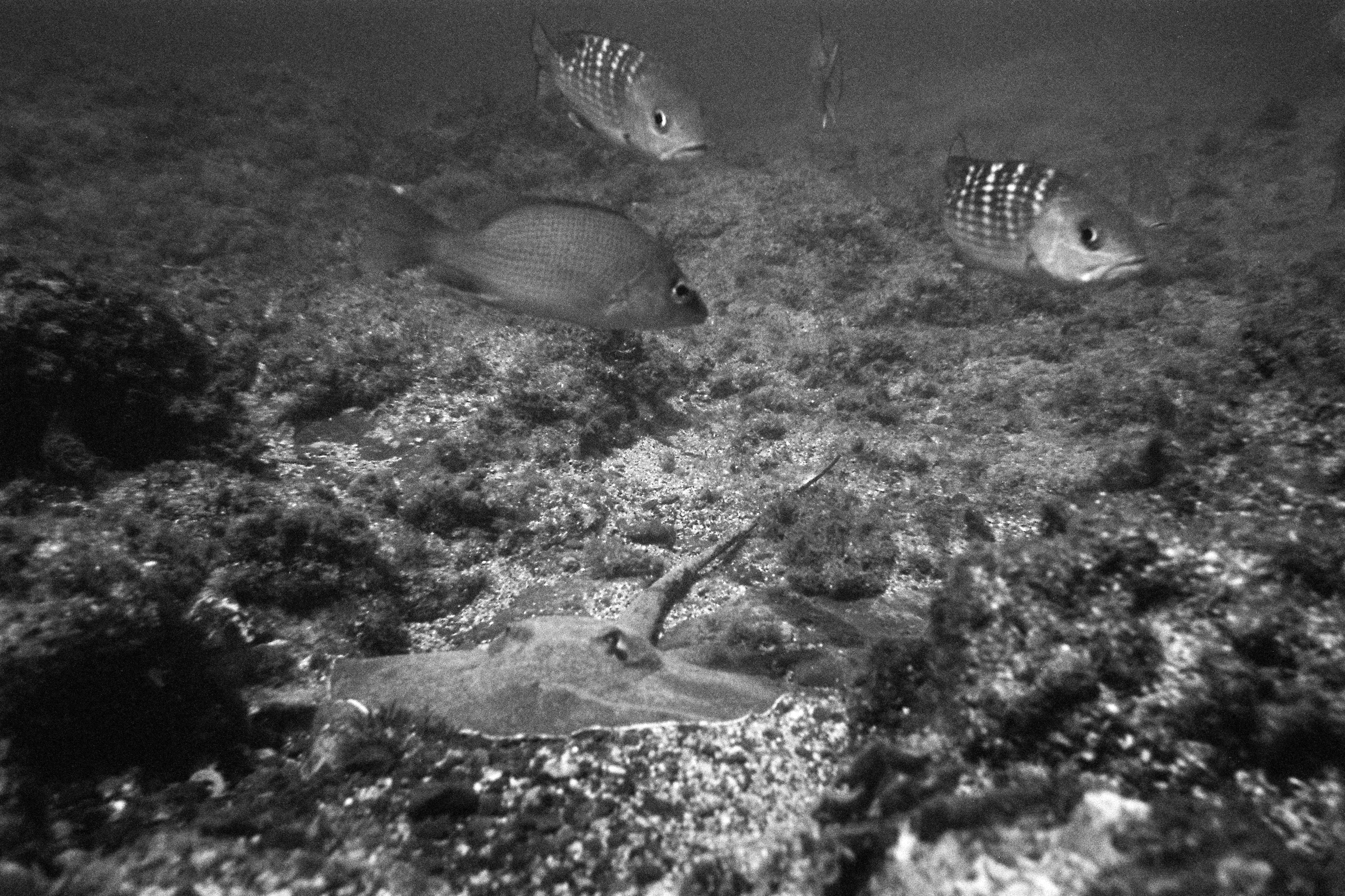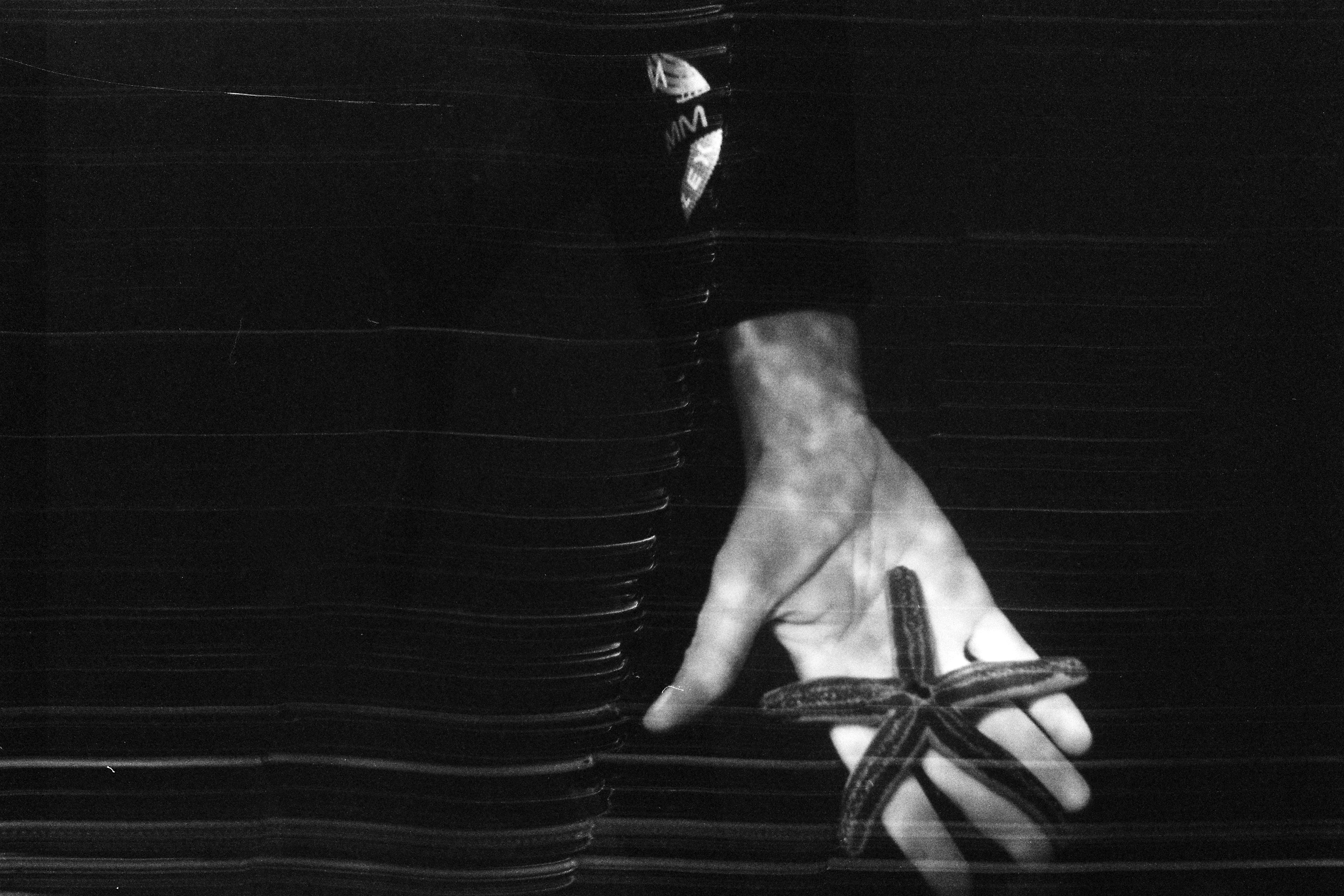 Hace poco más de un año conseguí una Nikonos por eBay y empecé a fotografiar cerca del mar, y dentro de él. Las texturas, los colores, lo que pasa debajo de la superficie. Dividí la sección entre color y blanco y negro porque la vibra es completamente distinta.